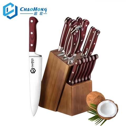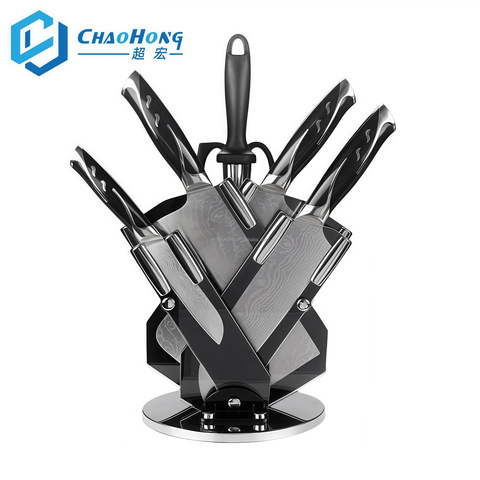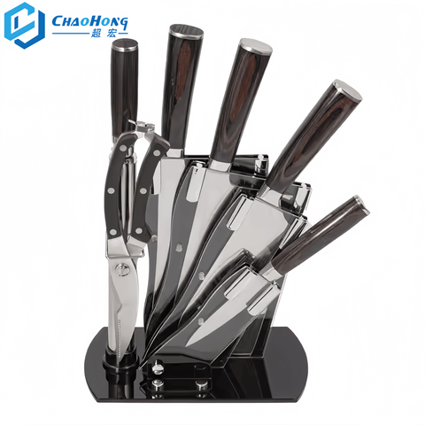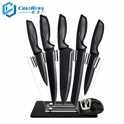 Best-seller aço inoxidável Chef Kitchen Knife Set com suporte acrílico PP Handle Premium Kitchen Knife Block Sets