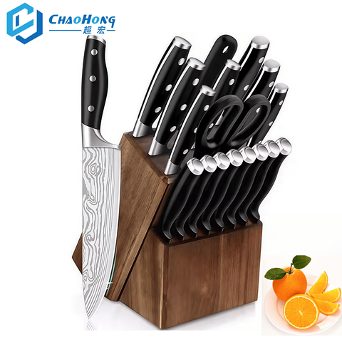 15-Piece Professional Custom Chef Faca com Premium Japão Santoku Faca & Bloco De Armazenamento De Madeira